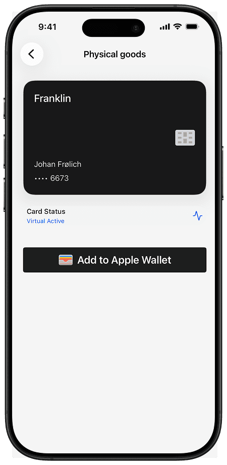 Add your Franklin card to Apple Pay directly from the Wallet app or the Franklin app — and start paying in just 2 minutes.